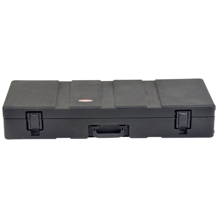 Roto-molded case construction allows for unique features while maintaining a very competitive price. The new roto molded cases feature a molded-in unbreakable carrying handle and integrated valance design which incorporates the new patent-pending latching system. These latches are made with an indestructible material, easy to operate and can take the rigors of the road. Each case has roller blade style wheels for easy transport. With the new corner cleat system keyboardists can easily adjust the cleat positions to accommodate a variety of dimensions.